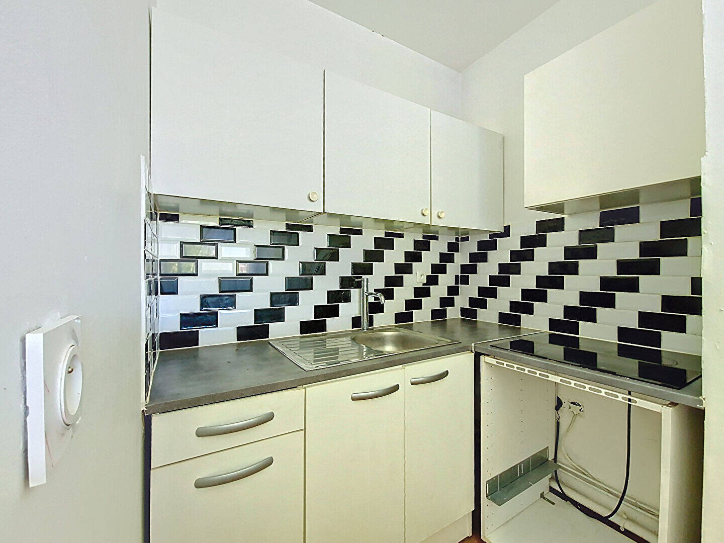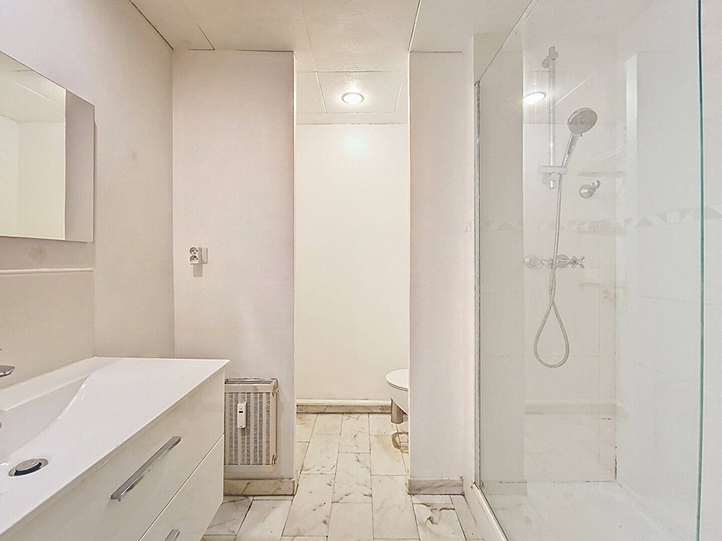 Le bien dispose d'une petite cuisine semi-ouverte, d'une salle d'eau avec grande douche et WC, d'une entrée avec placards et d'une belle chambre sans vis a vis avec balcon.