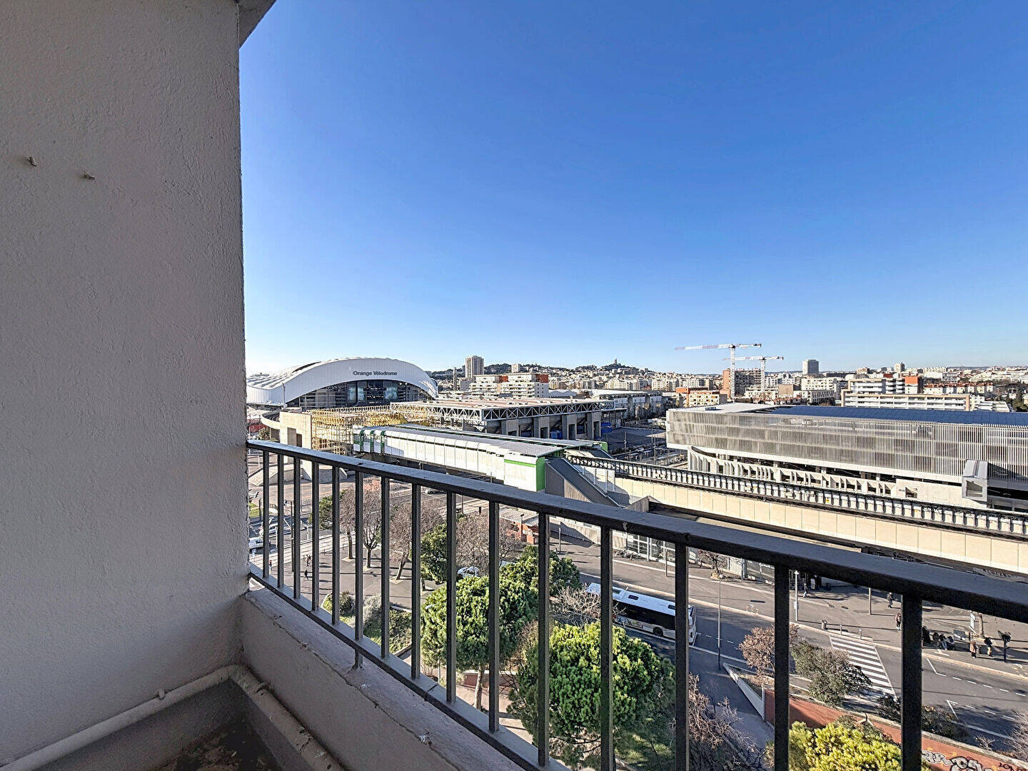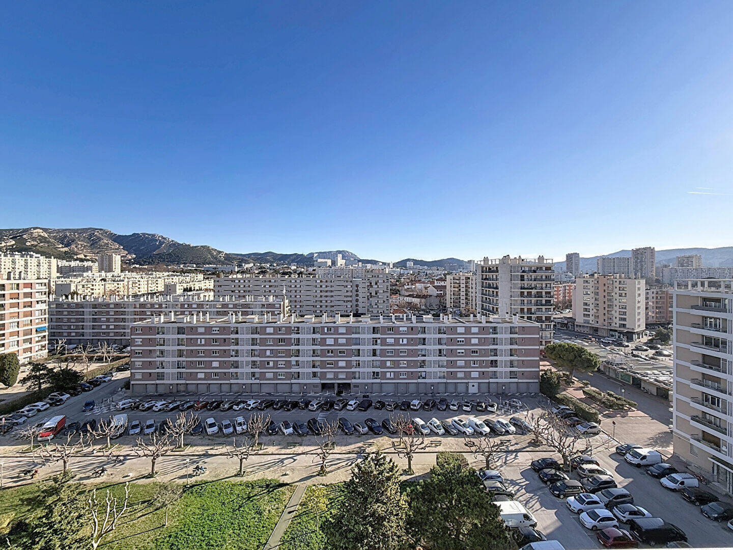 Le véritable atout de cet appartement réside dans sa vue exceptionnelle, offrant un panorama ouvert sur les collines marseillaises, la ville, le stade Vélodrome et Notre-Dame-de-la-Garde, un spectacle dont on ne se lasse pas.